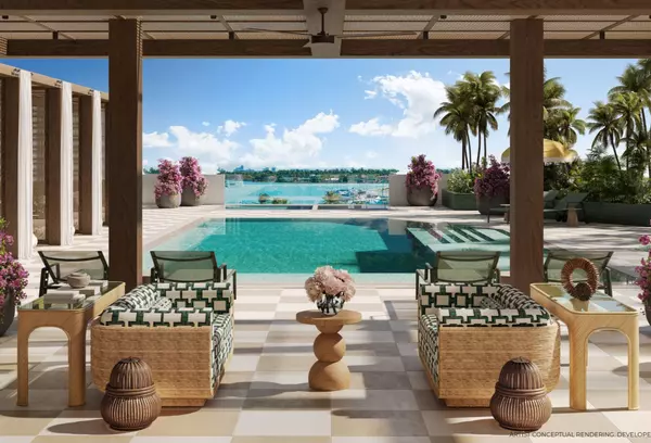 Resident lounge on pool level with indoor and outdoor seating for private events
